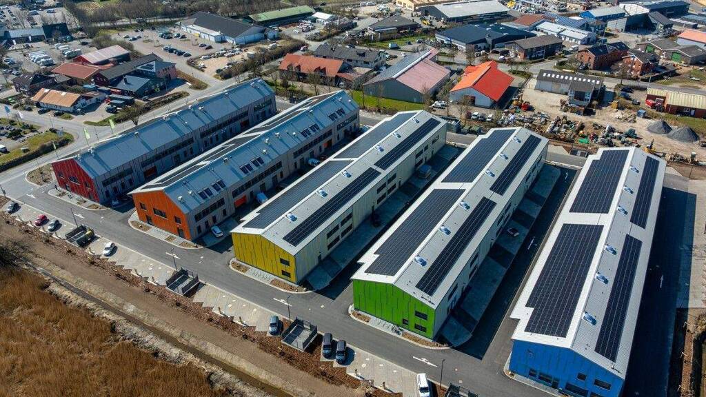 - Energieeffiziente Bauweise - Holzständerbau - Einsatz regenerativer Energien - Photovoltaikanlagen auf allen Gebäuden - Mieterstrommodell - geringe Betriebskosten - variable Größen von 182 m² und 400 m² in den Gewerbehallen - gute Verkehrsanbindung - gute Errichbarkeit