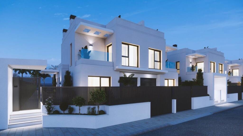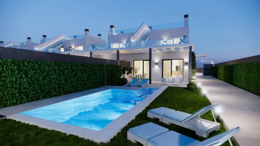 Dieses Wohnkomplex bietet eine einzigartige Wohnerfahrung nur 1 km vom Meer entfernt, in Los Alcázares. Es besteht aus 6 Reihenhäusern, von denen jedes darauf ausgelegt ist, Komfort und Funktionalität zu maximieren. Die Häuser bieten einen atemberaubenden Meerblick, sodass Sie die Schönheit der Umgebung bequem von Ihrem Zuhause aus genießen können. Die Nähe zum Flughafen, nur 4 km entfernt, sorgt für zusätzlichen Komfort für Reisende. OUTDOOR-ANGEBOTE Die Außenbereiche dieser Reihenhäuser sind darauf ausgelegt, einen herausragenden Lebensstil im Freien zu ermöglichen. Jedes Haus verfügt über einen privaten Garten, ideal zum Entspannen oder für Outdoor-Aktivitäten. Außerdem gibt es eine Terrasse und ein Solarium, perfekt um das sonnige Klima der Region zu genießen. Die Ergänzung eines privaten Pools in jedem Reihenhaus bietet einen exklusiven Raum zum Abkühlen und Genießen des Sommers in vollständiger Privatsphäre. INNENBEREICHE Das Interieur der Reihenhäuser ist sorgfältig gestaltet, um maximalen Komfort zu bieten. Mit einer Aufteilung von 3 Schlafzimmern und 3 Badezimmern ist jeder Raum für modernes Leben optimiert. Die Keramikfliesen verleihen einen Hauch von Eleganz und Haltbarkeit. Die Häuser sind mit Klimaanlage, elektrischen Rollläden und Geräten ausgestattet, was für eine komfortable und funktionale Umgebung sorgt. Eingebaute Schränke bieten effizienten Stauraum, wodurch die Räume ordentlich und aufgeräumt bleiben.