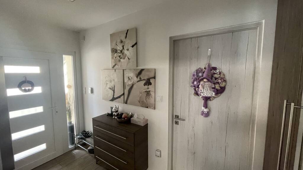 Objektbeschreibung Das vollständig neu renovierte Einfamilienhaus verfügt über komfortable Räume. Ein überdachter Parkplatz für 2 Autos gehört ebenfalls zur Immobilie. Der Garten rund um das Haus ist gut angelegt, eben und mit Bäumen und Sträuchern bepflanzt. Es gibt auch ein installierte Bewässerungssystem, das über einen Brunnen betrieben werden kann. Raumaufteilung Im Erdgeschoss befinden sich 2 Schlafzimmer, ein offenes Küchen-Esszimmer, ein Wohnzimmer sowie ein Badezimmer mit WC, ein Abstellraum und ein Hauswirtschaftsraum. Das Obergeschoss kann vom neuen Eigentümer nach eigenen Vorstellungen gestaltet werden, da die Versorgungsleitungen und die Heizungsinstallation bereits vorbereitet sind. Neben den großzügigen Innenräumen gehört auch eine große überdachte Terrasse zum Haus, die einen bequemen und zentralen Ort für das Familienleben bietet, egal ob für besondere Anlässe oder einfach im Alltag. Zur Immobilie gehört ein 25 m² großes Wohn-/Arbeitszimmer, aus dem ein separater Wohnbereich oder ein Apartment eingerichtet werden kann.