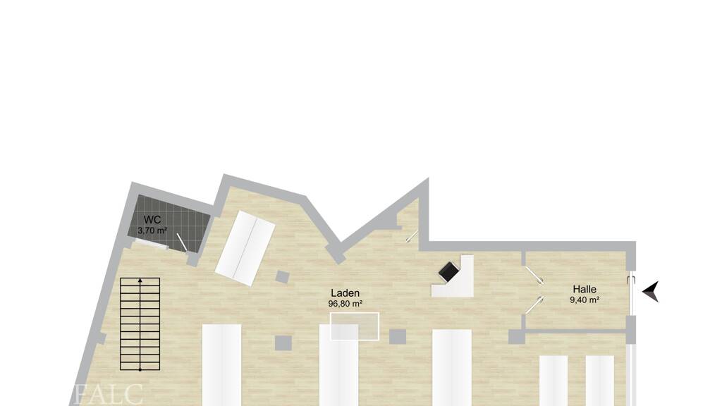 Im Erdgeschoss Ihrer neuen Immobilie befindet sich der größte Geschäftsraum. Hier können Sie in Zukunft Ihre Kunden empfangen oder auch Ihre Waren lagern.