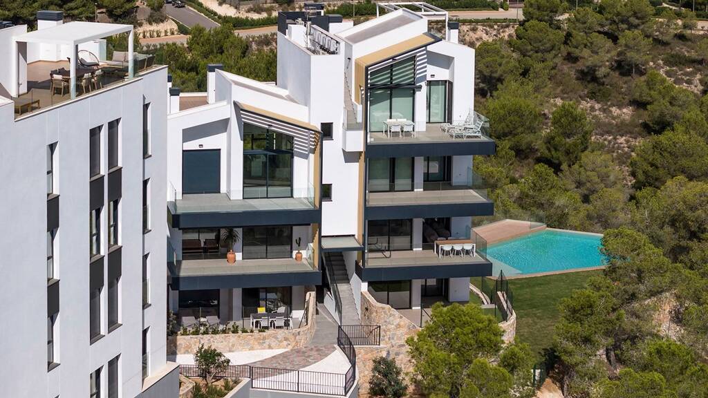 Moderne Wohnung in der Gemeinde Mandarino Las Colinas Golf mit 2 Schlafzimmern, freiem Blick und einzigartigem nordischen Design. Diese brandneuen Wohnungen bieten geräumige Terrassen, hohe Decken im Wohnbereich mit Panoramafenstern. Schön angelegte Gemeinschaftsgärten und Poolbereich. Privater Parkplatz und Abstellraum zu jeder Wohnung. Privates Wohnen inmitten der Natur und doch nur wenige Gehminuten vom Clubhaus und allen verfügbaren Dienstleistungen entfernt.