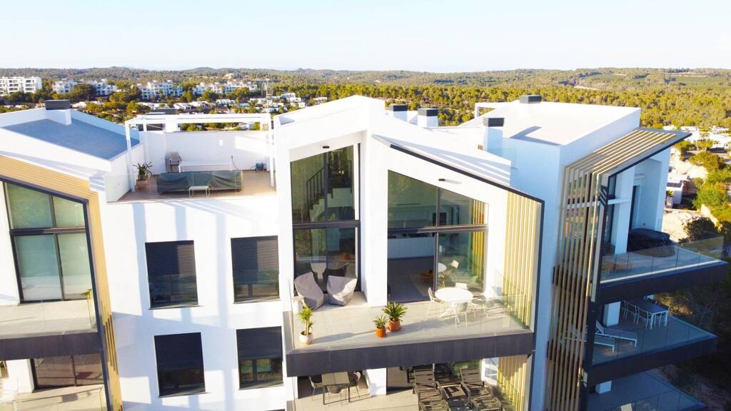 Modernes Penthouse im Las Colinas Golf & Country Club in der Gemeinde Mandarino mit 3 Schlafzimmern und 2 Bädern. Geräumige Hauptterrasse mit zusätzlicher privater Dachterrasse und freiem Blick auf das Meer mit Blick auf den mediterranen Wald. Südausrichtung mit Air-Zonen-System für die Klimaanlage in der gesamten Wohnung, das in jedem Raum eine andere Temperatur ermöglicht, alle Elektrogeräte in der Küche inklusive Weinkühler, BORA-Kochfeld und Dampfbackofen. Pergola auf der Dachterrasse als Schattenspender und Vorinstallation für Whirlpool und Außenküche. Dimmer für alle Leuchten im Anwesen und elektrische Innenjalousien in allen Räumen. Privater Parkplatz und Abstellraum in der Tiefgarage sowie ein wunderschöner Infinity-Gemeinschaftspool runden dieses tolle Penthouse ab.