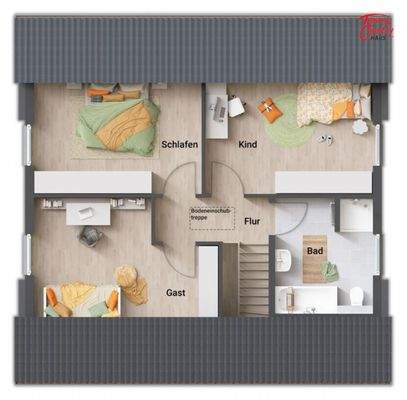 Bei dem angebotenen Haus handelt es sich um ein Beispielobjekt. Selbstverständlich kann das Grundstück auch mit anderen Haustypen von Town & Country Haus bebaut werden.