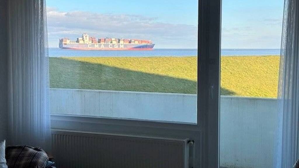 Von der Küche und vom Essplatzfenster im Wohnzimmer hat man Sicht auf die Kugelbake - ebenso vom Balkon. Vom Wohnzimmer und vom Balkon genießt man die Sicht auf die Grimmershörnbucht mit dem Welt-Schifffahrtsweg. Schon beim Frühstück kann man die vorbeiziehenden Schiffe beobachten.