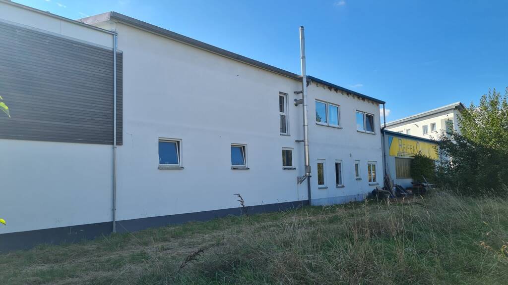 Die angebaute wärmegedämmte und beheizte Halle mit Sektionaltoren ließe sich als Werkstatt, Lagerhalle oder Produktionshalle nutzen und eröffnet damit Potenziale für den unternehmerischen Erfolg. Hierfür stehen auch Büroräume, Kundenempfangsraum, Lagerraum, Sozialraum und Sanitärbereiche zur Verfügung.