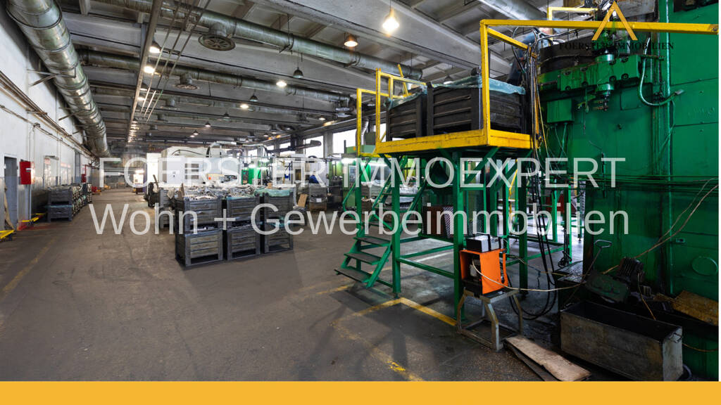 GroĂźe, flexible Produktions- oder Lagerhalle mit Starkstrom, gut ausgestattet, ebenerdig, mit ĂĽberdachter Lieferzone zu vermieten.