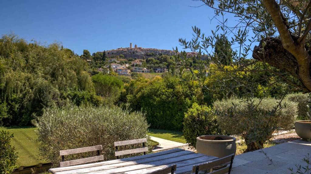 Discover this magnificent modern villa offering a breathtaking, postcard-worthy view of the famous village of Saint-Paul de Vence, both day and night.