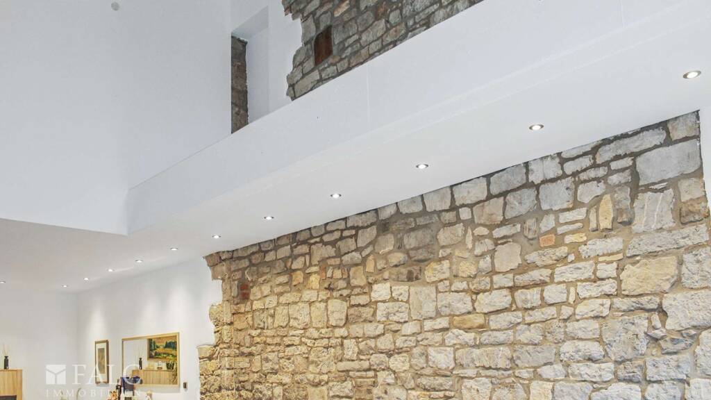 Das Hauptgebäude (ca. 240 m2) wurde 2002 bereits hochwertig und stilgerecht ausgebaut und modernisiert. Es verfügt über sechs Zimmer, zwei Küchen, zwei Bäder, zwei Gäste WC zwei Terrassen, einen Balkon und eine Kaminecke mit Specksteinofen. Hierunter verbirgt sich der ca. 12 m2 Gewölbeweinkeller.