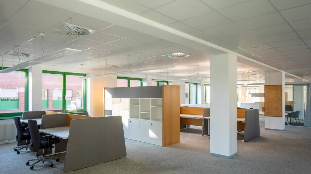Zur Verfügung stehen Einzelbüros, Büros mit etwa 120 m² sowie Großraumbüros im Ausmaß von bis zu ca. 1.200 m².
