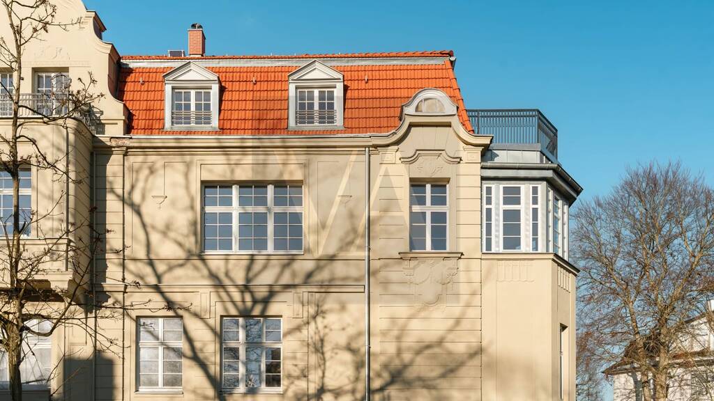 Objektbeschreibung Entdecken Sie raffiniertes Wohnen in dieser atemberaubenden 207,42 m² großen Maisonette-Wohnung, die sich über die 3. und 4. Etage einer prestigeträchtigen Denkmalvilla im Grunewald erstreckt. Die Wohnung wurde so konzipiert, dass sie die Essenz von Luxus und Raffinesse einfängt. Sie verfügt über mehrere großzügige Räume, darunter ein elegantes Arbeitszimmer, vier exklusive Bäder und eine beeindruckende Galerie, die als vielseitiger Bereich für Kunstausstellungen, eine Leseecke oder ein stilvolles Home-Office dient. Die Bulthaup-Küche ist mit hochwertigen Geräten ausgestattet, die Funktionalität und moderne Ästhetik nahtlos miteinander vereinen. Ein charmanter Echtholzkamin wertet den Wohnbereich auf und schafft ein warmes, einladendes Ambiente. Zwei großzügige Balkone bieten einen Panoramablick und schaffen das perfekte Gleichgewicht zwischen Innen- und Außenleben – ideal für alle, die Ruhe inmitten von Erhabenheit suchen. Raumaufteilung Dieses Duplex-Apartment erstreckt sich über zwei Ebenen und bietet eine außergewöhnliche Aufteilung, die sowohl die Privatsphäre als auch die Geräumigkeit fördert. Die untere Ebene beherbergt den Hauptwohnbereich mit einem offenen Design, einschließlich einer schicken Bulthaup-Küche, einem gemütlichen Wohnzimmer mit Holzkamin und Zugang zu zwei großen Balkonen, die sich perfekt zum Essen im Freien oder zum Entspannen mit Blick eignen. Im Obergeschoss befindet sich die beeindruckende Galerie, die als flexibler Bereich zum Entspannen oder für kreative Aktivitäten dient. Jedes Zimmer ist mit Einbauschränken ausgestattet, die für ausreichend Stauraum sorgen und gleichzeitig die moderne Ästhetik der Wohnung bewahren. Der Grundriss der Wohnung ist durchdacht und bietet sowohl intime Ecken als auch großzügige Räume, was sie ideal für einen anspruchsvollen urbanen Lebensstil macht.