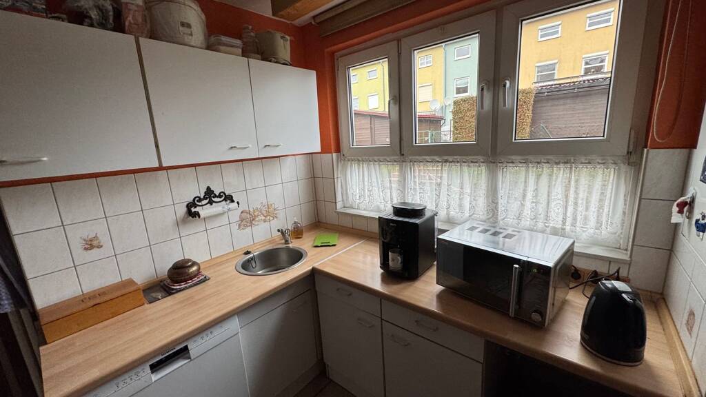 Die kleine Terrasse lädt im Sommer zum Sonnenbaden ein und der Garten ist mit ca. 100 m² überschaubar, hat aber Platz für Ideen.