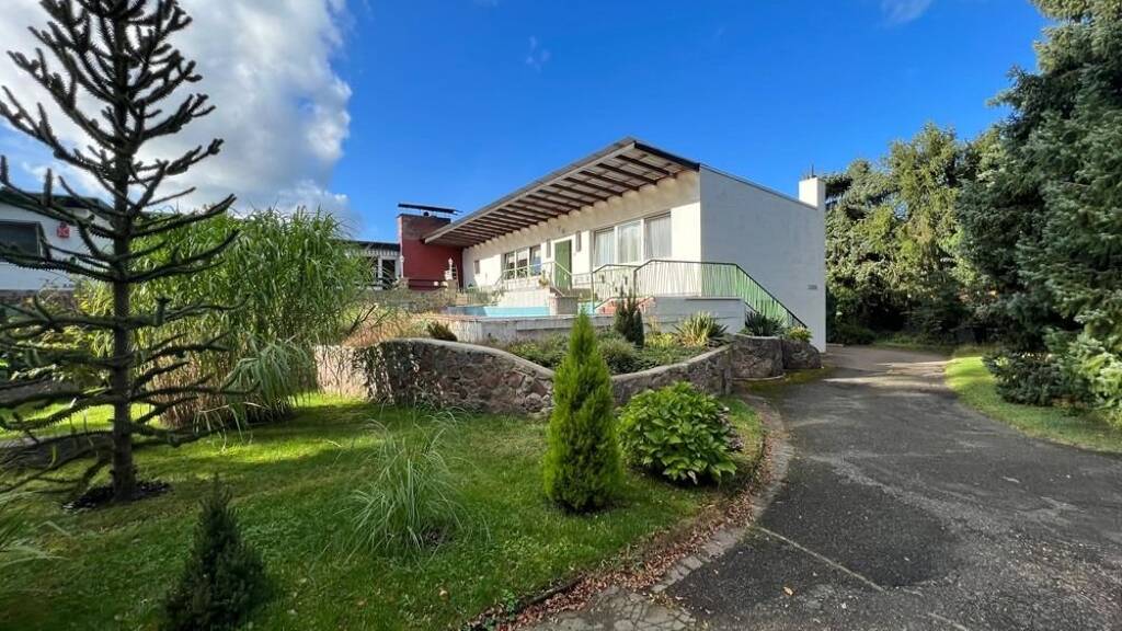2 - 4 Zimmer, Küche und 2 Bäder in einem Gebäude mit drei Wohnungen. Das Haus befindet sich auf einem ca. 2500 m² großen Grundstück auf dem Land. Ursprünglich wurde das Gebäude Mitte der 1960er Jahre als großzügiges Einfamilienhaus mit Schwimmbad errichtet und in den 1980er Jahren von der jetzigen Eigentümerfamilie in drei Wohneinheiten umgewandelt. Das Schwimmbad, welches zu dieser Wohnung gehört, wurde stillgelegt.