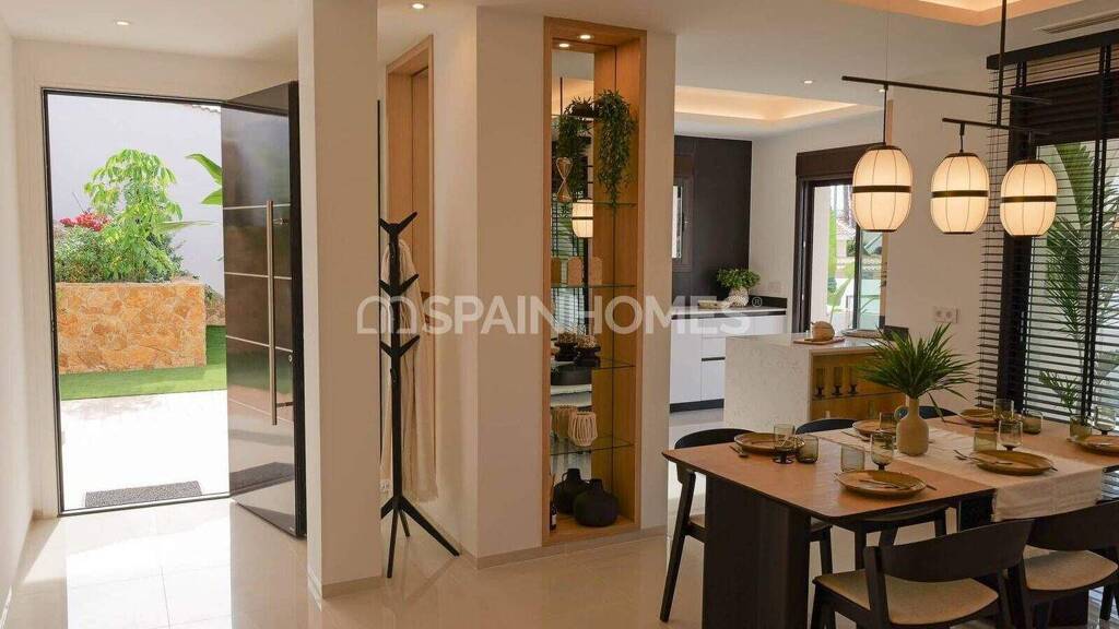 Diese freistehende Villa verfügt über 3 Schlafzimmer und 2 Badezimmer. Der Essbereich mit doppelter Deckenhöhe sorgt für viel Tageslicht und ein offenes Raumgefühl. Das Haus besticht durch einen praktischen, eleganten Grundriss mit moderner Küche und fließendem Übergang zwischen Innen- und Außenbereich.