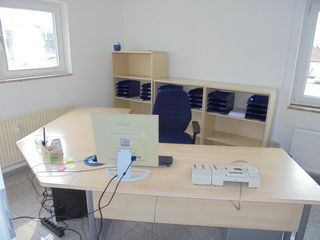 Das Eckgrundstück ist von zwei Seiten zugänglich und bietet eine räumliche Trennung zwischen dem Wohnhaus und dem Gewerbebereich, den Sie von der linken Seite des Hauses erreichen können. Hier befindet sich ein Verkaufs-/Ausstellungsraum mit größeren Fensterflächen zur Gestaltung als Schaufenster. Ein separater Büroraum und...