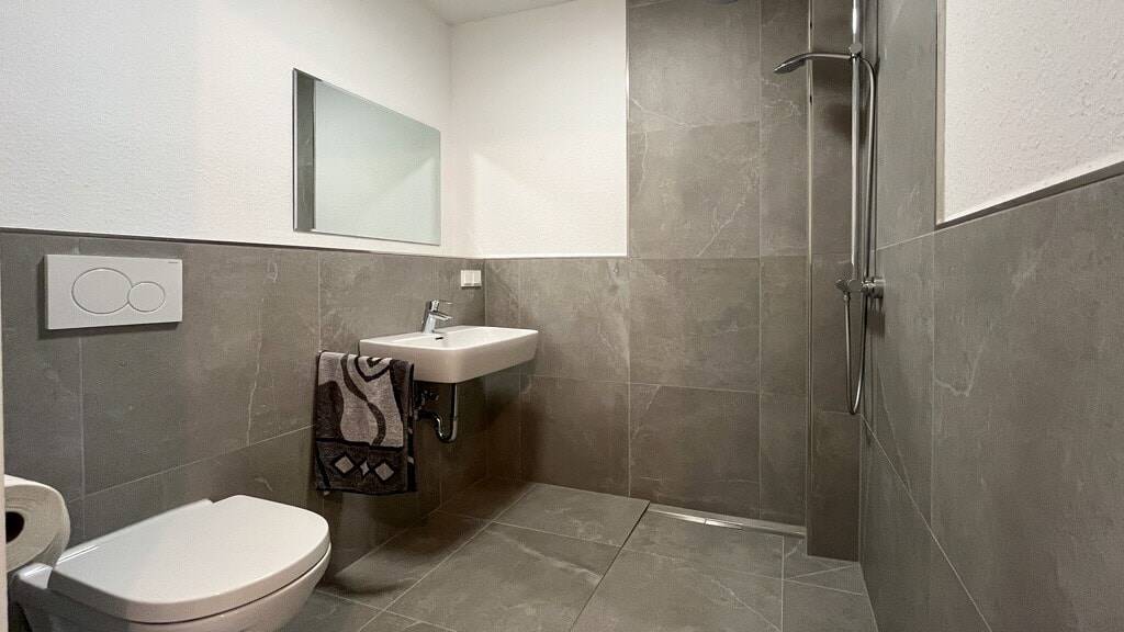- Badezimmer: Bad mit Dusche, Bad mit Fenster