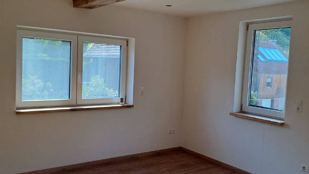 Das Obergeschoss wurde komplett entkernt und das ursprüngliche Fachwerk freigelegt. Die offene Bauweise schafft die Möglichkeit Ihren Grundriss frei zu gestalten und Wohnideen umzusetzen. Die Elektroleitungen und die Zu- und Abwasserrohre sind bereits vorbereitet.