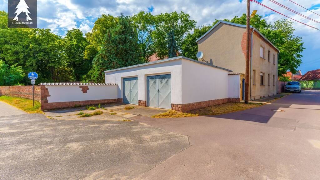 Im Außenbereich lädt eine Terrasse zum Verweilen ein - sei es mit einem Frühstück in der Morgensonne oder einem entspannten Abend mit Freunden. Der Garten ist großzügig, aber aktuell noch wenig gepflegt. Er bietet viel Raum für eigene Ideen - von Blumenbeeten über eine Sitzecke bis hin zum Gemüsegarten. Die Garage ergänzt das Gesamtbild funktional.