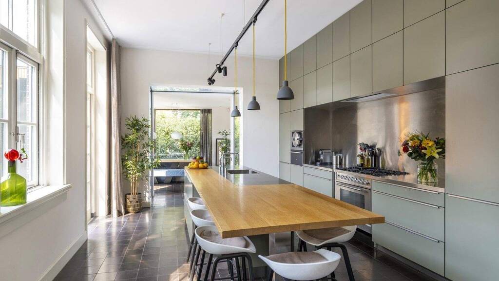 Monumentale Villen mit zeitgenössischem Interieur sind wahre Juwelen, die oft in Fernsehsendungen gezeigt werden. Diese Villa an der Thorbeckelaan, die 1926 als Pfarrhaus erbaut wurde, ist ein so seltenes Traumhaus. Das Anwesen wurde vom Architekten Huijgens im Stil von Um 1800 entworfen und bietet eine einzigartige Mischung aus Nostalgie und modernem Komfort. Umgeben von viel Grün bietet die Villa viel Privatsphäre und liegt gleichzeitig in der Nähe des Zentrums von Enschede. Das Haus strahlt Exklusivität aus und bewahrt viele authentische Elemente, wie das Treppenhaus und die Holzschnitzereien. Die geräumigen, hohen Zimmer mit Parkettböden sind charaktervoll. Bei den jüngsten Renovierungsarbeiten wurden moderne, elegante Elemente hinzugefügt, wie z. B. ein Anbau mit Holzpaneelen, die alle in Absprache mit Monumentenzorg durchgeführt wurden. In ihrer mehr als 100-jährigen Geschichte hat diese Villa viel erlebt. Die "Grande Dame" hat zwei Weltkriege überlebt und ist dem letzten nur knapp entkommen. Durch Bombenangriffe wurde die nahe gelegene Grundschule komplett zerstört. Um den Kindern weiterhin eine Ausbildung zu ermöglichen, wurde im Pfarrhaus ein provisorisches Klassenzimmer eingerichtet. Bei Luftangriffen eilten sie in einen sicheren Unterschlupf im Keller. Zu dieser Zeit lebte Pfarrer Nanne Zwiep mit seiner Familie im Pfarrhaus. In der Kirche predigte er gegen die Verfolgung der Juden, was ihn teuer zu stehen kam. Pfarrer Zwiep wurde verhaftet und nach Dachau gebracht, wo er 1942 starb. Zu seinem Gedenken wurde ein Stolperstein in den Boden vor der Eingangstür der Villa gelegt. Das Pfarrhaus diente auch als Versteck für Flüchtlinge, was durch ein abnehmbares Brett in einem Schrank im zweiten Stock sichtbar wird. Hinter der Mauer fanden die Bewohner einen Kinderschuh und alte Zeitungen. Aus Respekt vor der Vergangenheit wurde der Raum erhalten. Die Geschichte brachte auch schöne Momente mit sich: Ehemalige Bewohner, oft Kinder von Pfarrern, hinterließen Zettel oder klingelten an der Tür, um ihre alte Heimat noch einmal zu besuchen. Während dieser Besuche wurden herzerwärmende Geschichten erzählt. Die positive Atmosphäre des Pfarrhauses, die immer spürbar ist, sorgt dafür, dass sich die Besucher wie zu Hause fühlen. Die Villa, die mit einem markanten Zaun abgeschirmt ist, ist auf einem Hügel gebaut. Die Terrasse mit der beeindruckenden Doppelhaustür erreicht man über eine Steintreppe. Darüber befindet sich ein anmutiger Balkon. In der Eingangshalle, mit einem kleinen Heizkörper und einem neuen Zählerschrank, beginnt der schöne Terrazzoboden. Durch eine gläserne Schwingtür gelangt man in den großen, hellen Flur mit dem gleichen Terrazzoboden. Sofort ist man beeindruckt von der nahtlosen Verschmelzung von "damals und heute". Besonders beeindruckend sind die großflächigen Türzargen mit handwerklichen Holzschnitzereien aus der Vergangenheit. Eine große, runde Designerlampe an der Decke, die sich an anderen Stellen in der Villa wiederholt, steht für die Gegenwart. Wenn es angezündet wird, spiegelt sich das Muster der Lampe an den Wänden und erzeugt einen magischen Effekt. Auf der rechten Seite befindet sich der erste Raum mit drei hohen Fenstern. Das ehemalige Arbeitszimmer dient heute als "Chill Room", eignet sich aber auch hervorragend als Schlafzimmer. Neben den beiden monumentalen Einbauschränken gibt es noch einen dritten Schrank, in dem der Wasserenthärter untergebracht ist. Wenn du den Flur geradeaus nach rechts entlanggehst, betrittst du einen kleinen Flur mit zwei Türen. Die linke Tür führt in einen geräumigen, unterirdischen Keller mit zwei Fenstern. Es gibt viele Schränke auf beiden Seiten. Der Boden wurde vor kurzem durch Fliesen im "alten Stil" ersetzt. Hinter der zweiten Tür befindet sich eine Toilette, die mit Fenster, Toilette, Waschbecken und Heizkörper ausgestattet ist. Kehrt man in den Flur zurück, gelangt man schräg geradeaus in das Wohnzimmer en suite. Möbel sind hier fast überflüssig; Der Wohnraum selbst strahlt Atmosphäre aus. Der Bereich ist in ein Vorderzimmer und ein Esszimmer unterteilt. Die schönen, verglasten Schiebetüren mit eingebautem Stauraum auf beiden Seiten ermöglichen es, die Räume zu trennen. Um die Symmetrie des monumentalen Gebäudes auch bei den Fenstern zu erhalten, wurde die Außenwand des vorderen Raumes um ein zusätzliches Fenster erweitert. In der gleichen Wand befindet sich in der Mitte ein Schornstein, unter dem ein Holzofen als elegante Ergänzung zum gemütlichen Ambiente steht. Für Wärme sorgen auch Heizkörper unter den Fensterbänken. Der Speisesaal verfügt über Heizkörper und einen Holzofen. Der Kaminsims über dem Ofen ist mit Oud-Hollandse-Fliesen ausgekleidet und bildet ein originelles Accessoire in dem ansonsten ruhigen Raum. Holzschiebetüren, die mit Stauraum hinter Holztüren eingerahmt sind, bieten Zugang zum Hinterhof. Vom Esszimmer aus gelangt man in die Küche. Die großen, hohen Fenster geben den Blick auf die Terrasse und den Garten frei. Auch hier gibt es eine nüchterne, angenehm beruhigende Innenbasis. Bei den kleinen, grauen, antik anmutenden Bodenfliesen handelt es sich um original handgefertigte Castelo-Fliesen mit Fußbodenheizung; Wie entzückend! Sie haben den gleichen Grauton wie die imposante Schrankwand mit großem Kühlschrank, Frischhalteschubladen, Dampfgarer, Wärmeschublade und Küchenschränken, die bis zur Decke reichen. Eine Edelstahlnische in der Mitte der Wand ist der Platz für den sechsflammigen Gasherd mit Backofen. Flankiert wird der Ofen von geräumigen, tiefen Korbschubladen mit einer verdeckt ausziehbaren Speisekammer auf der rechten Seite. An Stauraum mangelt es in dieser praktischen Küche nicht. Wenn Kochen Ihr Hobby ist, ist dies das kulinarische Valhalla. Es gibt genug Platz, um gemeinsam Rezepte für die leckersten Gerichte auszuprobieren. Schauen Sie lieber zu? Dies können Sie von einem der sechs Hocker an der großz