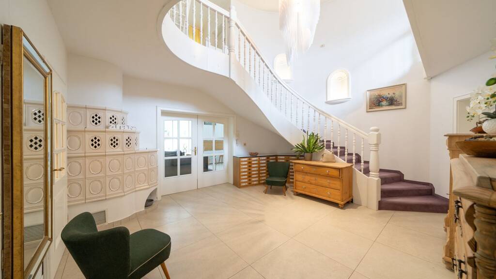 Das Anwesen zeichnet sich durch viele Details aus: lichtdurchflutete Räume mit beeindruckenden Ausmaßen, hochwertige Materialien, Extravaganz und zugleich Behaglichkeit sind bei diesem Anwesen vorherrschend.