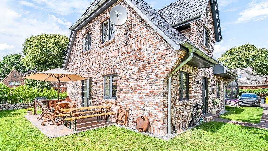 Der typisch norddeutsch gestaltete Garten mit Friesenwall, Hecke und Zaun sowie zwei Stellplätzen direkt am Haus runden das Angebot ab.