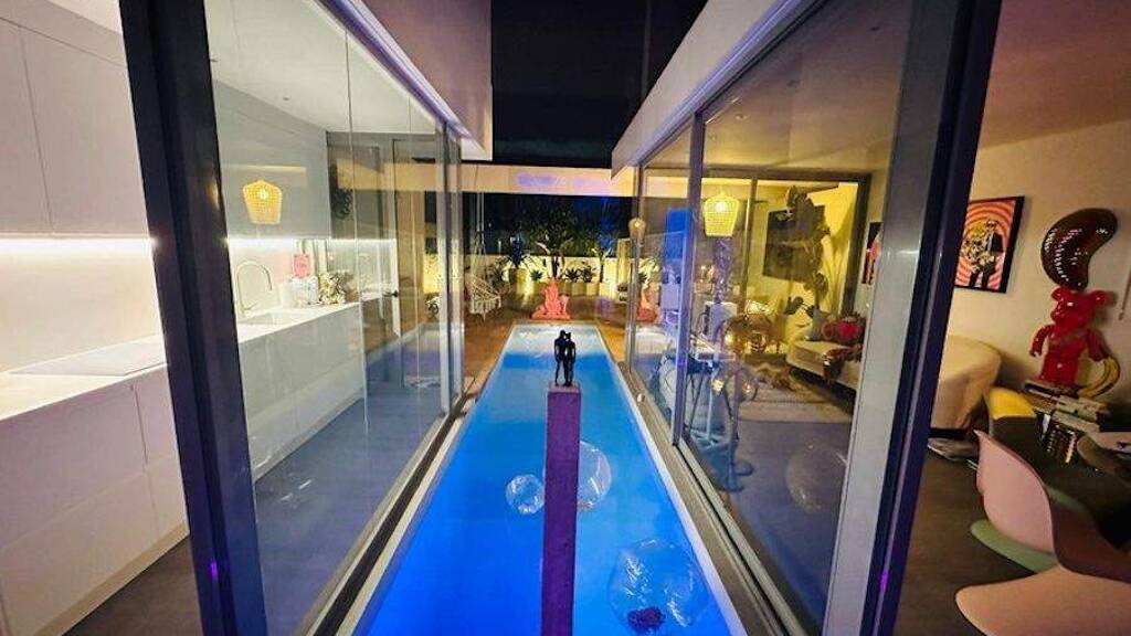 The cubism design and extensive use of glass make this house very unique, allowing you to gaze at the stars. One of the most spectacular features is the pool that penetrates right into the living area - which is why it's called CASA AQUA.