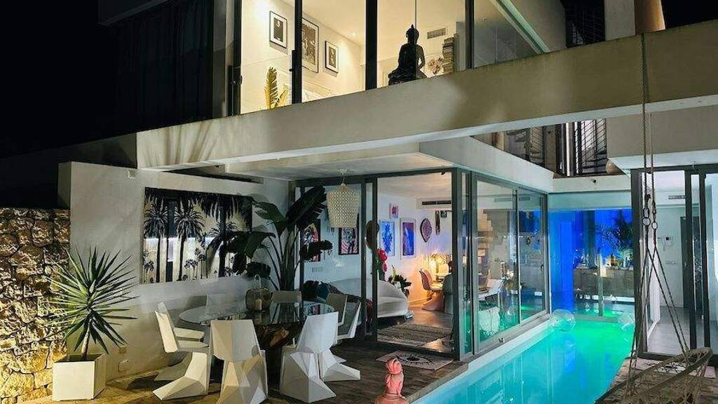Magnificent water inspired property "Casa AQUA" is located within walking distance of the beach in the municipality of San Josep, by the bay of Cala de Bou