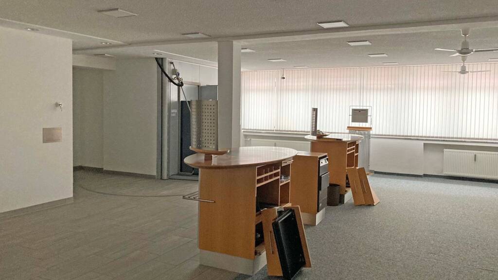 * Nutzfläche im Erdgeschoss Schalterhalle + Büros: 220 m² + Personalräume im OG: 35m², Gesamt: 255 m²