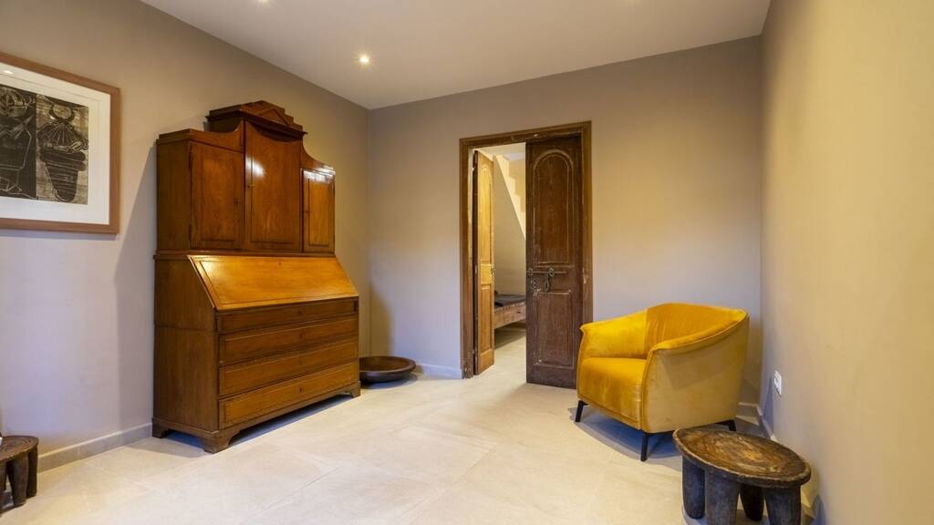 Im Erdgeschoss befindet sich der freundlich gestaltete Wohnbereich mit der angrenzenden Küche und dem Essbereich, sowie eines der drei Schlafzimmer mit eigenem Bad. Im Obergeschoss liegen die zwei weiteren Schlafzimmer, auch jeweils mit eigenem Bad en-suite. Zudem gibt es eine davorliegende Terrasse mit ausreichend Platz. Der Innenhof verfügt ebenfalls über ein weiteres Bad. Zur Ausstattung gehören unter anderem eine Klimaanlage warm/kalt, sowie ein Kamin.