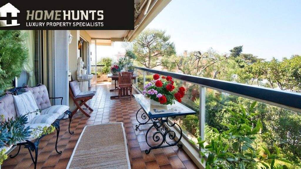 The flat is air-conditioned and enjoys lovely views over the sea and the Baie des Anges.