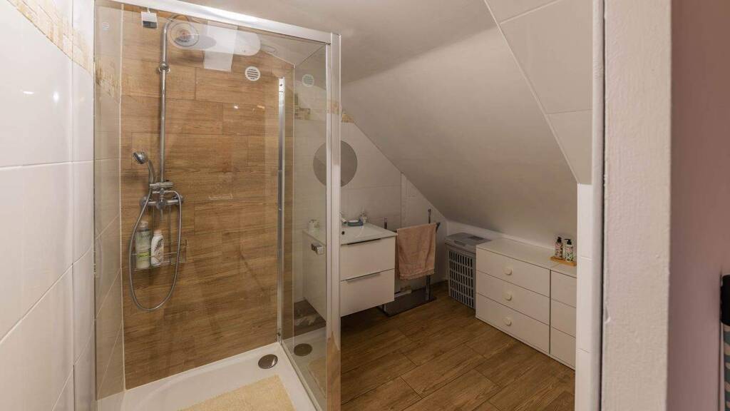 Im Dachgeschoss: 2 weitere Schlafzimmer, ein Wohnzimmer, Duschbad und eine Einbauküche – ideal als Gästebereich oder für Teenager