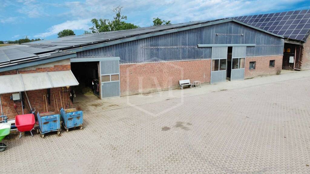 Des Weiteren steht eine Reithalle der Reitmaße ca. 20,00 m x ca. 50,00 m und zwei Stallgassen, welche teilweise als Paddockboxen erbaut wurden sowie zwei Laufställen für bis zu insgesamt 60 Pferde zur Verfügung.