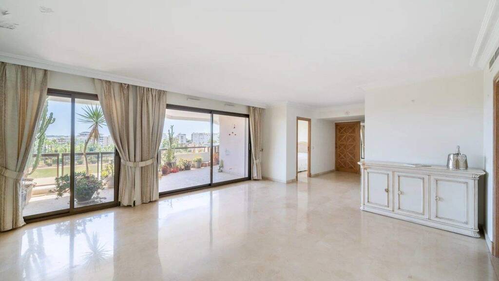 The apartment opens onto a front-facing terrace, offering open views and a pleasant sea glimpse.