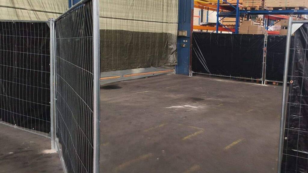 Mehrere Hallenlagerboxen/Lagerflächen, von ca. 27qm bis ca. 45 qm im Gewerbepark Pfaffenhofen (Baden-Württemberg) verfügbar, keine Produktion, teilweise abgetrennt durch ca. 2 m hohen Bauzaun (mit Folie als Sichtschutz verkleidet).