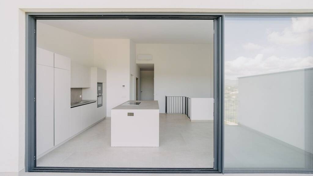 Zur hochwertigen Ausstattung zählen u.?a. Formentor Beige Fliesen, klimatisierte Wohnräume, doppelt verglaste Aluminiumfenster mit thermischer Trennung, eine voll ausgestattete Einbauküche mit integrierten Geräten sowie eine Garage mit elektrischem Tor.