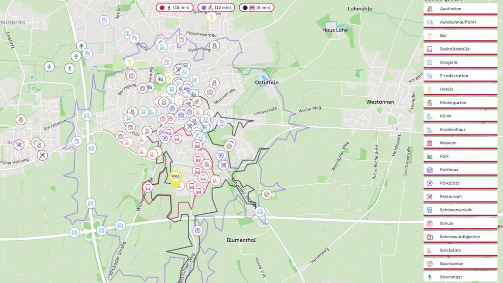 Ein entscheidender Vorteil von Werl ist die hervorragende Erreichbarkeit und Anbindung. Die nächstgelegene Bushaltestelle, "Beethovenstraße", ist nur ca. 300 Meter entfernt und sorgt für eine schnelle Verbindung innerhalb der Stadt. Zudem ist die Autobahnauffahrt zur A 445 in einer Entfernung von lediglich 1,2 Kilometern bequem erreichbar, was eine ausgezeichnete Anbindung an das überregionale Straßennetz schafft. Der nächstgelegene internationale Flughafen, Dortmund Airport, ist in etwa 30 Minuten mit dem Auto zu erreichen und ermöglicht so eine einfache Anbindung an nationale und internationale Reiseziele.