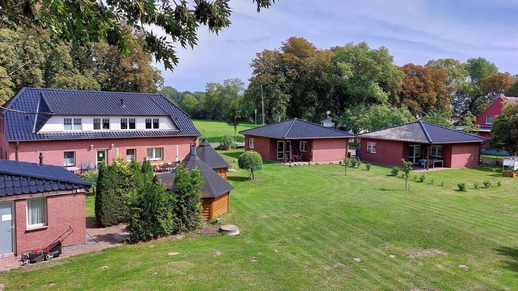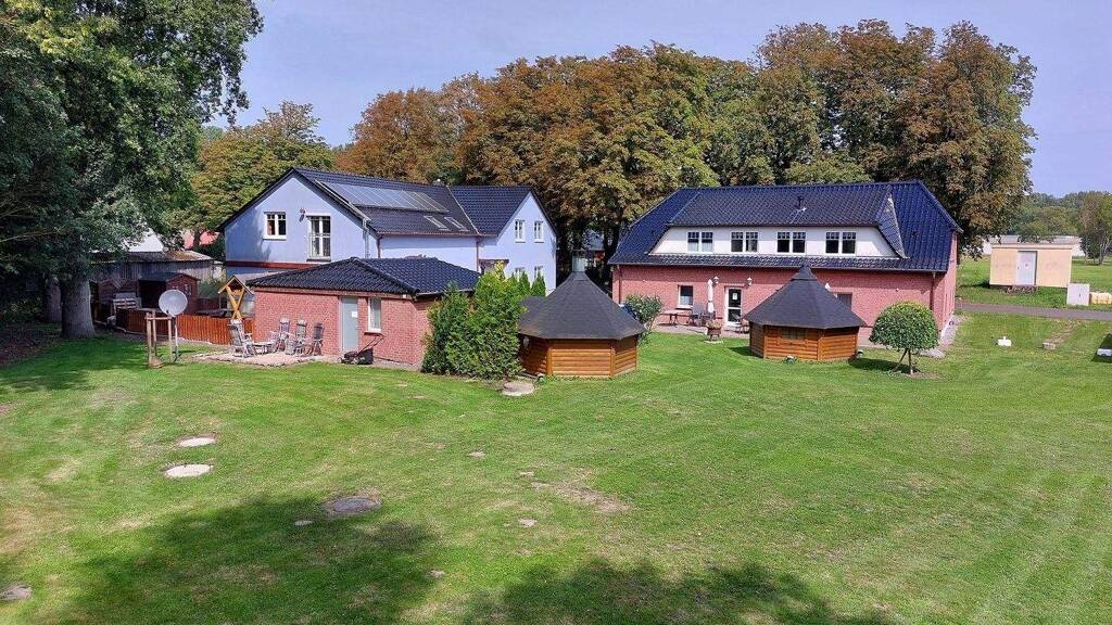 Diese in den Jahren 2004-2007 vollständig modernisierte Ferienanlage, bestehend aus zwei großen Häusern mit jeweils ca.200m² bzw. ca.300m² Wohn-/Nutzfläche sowie zwei Bungalows mit je 3 Zimmern und ca.60m² Wohnfläche befindet sich auf der malerischen Insel Rügen im OT Schaprode und damit im Nordwesten der Insel, nahe des Meeres/Boddens und der Insel Hiddensee.
