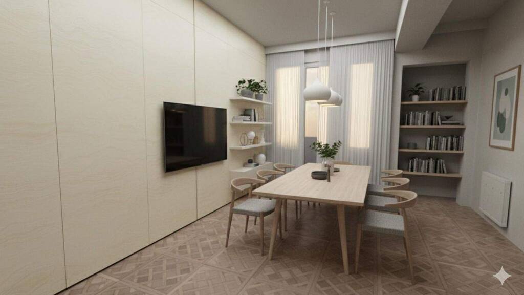Ein besonderes Highlight ist das weitläufige Esszimmer, das direkt an die Küche angrenzt - ideal für gemeinsame Stunden mit Familie und Freunden. Die hohen Decken verleihen den Räumen ein offenes Wohngefühl und zusätzlichen Komfort.