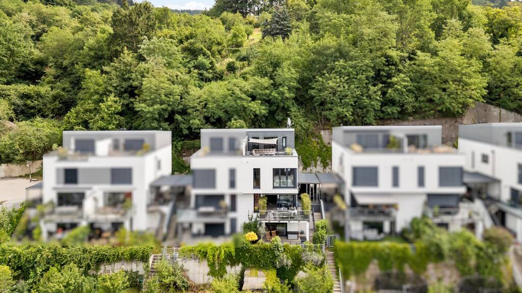 Beim Betreten des Erdgeschosses öffnet sich ein einladender Flur, an den sich eine praktische Garderobe anschließt. Der lichtdurchflutete Wohn- und Essbereich mit Zugang zum Balkon bildet das Herzstück dieses Geschosses und schafft eine harmonische Verbindung zwischen Innen- und Außenraum. Die elegante luxuriöse Küche überzeugt mit klarer Linienführung und hochwertigen Einbauten. Ein Gäste WC und eine Abstellkammer ergänzen die durchdachte Raumaufteilung. Im Obergeschoss erwarten Sie ein heller Flur, zwei komfortable Kinderzimmer, ein stilvolles Badezimmer und eine weitere Abstellkammer. Das Dachgeschoss beeindruckt mit einem großzügigen Dachstudio, einem zusätzlichen Gäste Badezimmer und einer sonnigen Terrasse mit einem traumhaften Fernblick, die einen herrlichen Rückzugsort bietet. Im Gartengeschoss erwartet Sie ein Bereich mit ganz besonderem Charme. Das ruhige Schlafzimmer öffnet sich direkt zur Terrasse und führt nahtlos in den angrenzenden Ankleidebereich. Ein echtes Highlight ist das luxuriöse Bad, das durch eine elegante Glaswand vom Schlafraum abgetrennt ist - modern, offen und mit einem Hauch von Extravaganz. Von der Terrasse führt zudem eine Außentreppe direkt hinunter in den idyllischen Garten. Abgerundet wird dieses Geschoss durch einen praktisch gelegenen Technikraum.