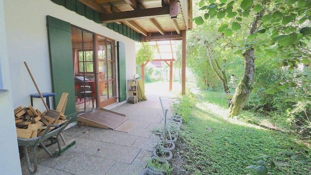 Über einen kleinen, privaten Zufahrtsweg erreichen Sie dieses idyllisch im Grünen gelegene Holzhaus, das durch seine zurückversetzte Lage ein hohes Maß an Ruhe und Privatsphäre bietet. Das Grundstück ist schön eingewachsen und vermittelt schon beim Ankommen ein Gefühl von Naturverbundenheit und Geborgenheit.