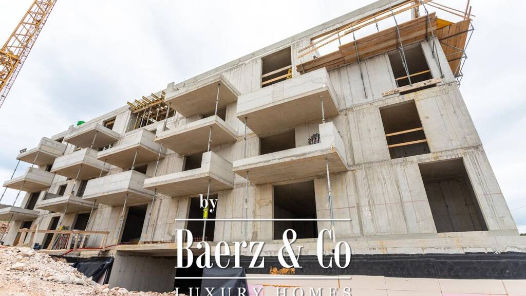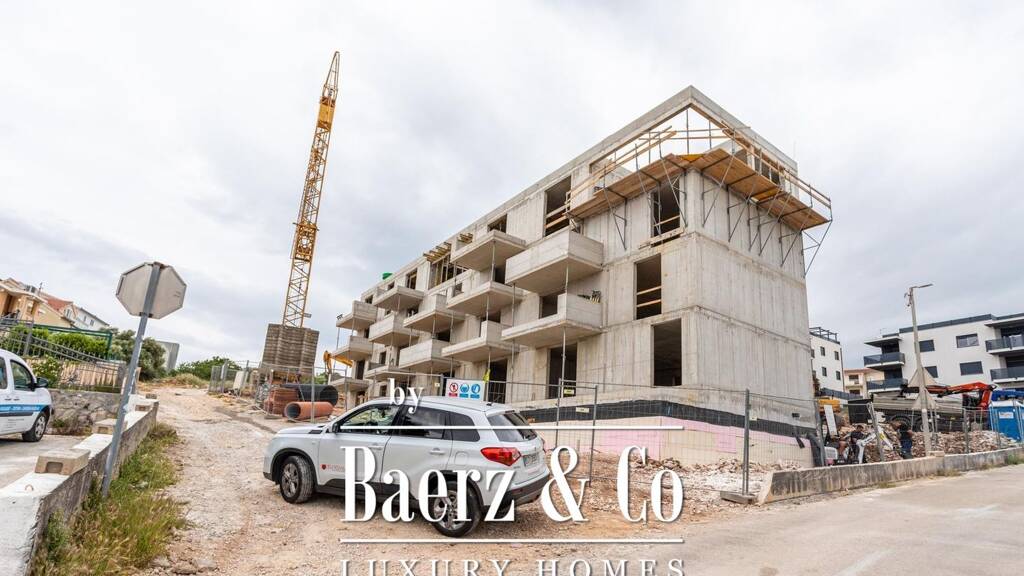 pokrug gornji - southern side of the island of Ciovo, modern building with 17 apartments, 150 meters from the sea, south orientation with sea view./ppthe microlocation of the property is excellent - it is located right next to a two-way road, a few minutes from the new bridge and only a ten-minute drive from split airport./ppthe building extends over five floors with two external entrances and two elevators that connect the floors with the basement where the garages and storage rooms are located. there are five apartments on each floor and the top floor is reserved for two spacious penthouses with panoramic views./ppbpenthouse s 17/b- located on the second floor of the building. it consists of a hallway, an open concept kitchen, dining room and living room (61,25 m2), three bathrooms, one toilet, three bedrooms, a laundry room and a storage room - a total closed area of 137,55 m2. in the outer part, it has 3 balconies and two terraces on the south side with a total area of 69,55 m2. the apartment has a wonderful view of the sea and direct, private communication with the elevator from the garage./pponly the highest quality materials were used in the furnishing of the apartments - high-class tiles and sanitary ware, electric shutters, air conditioning in every room, underfloor heating in the bathrooms and living area./ppthe apartment is ready to move in and can be purchased with a bank loan./ppprice includes two garage spaces and two storage rooms in the basement./ppmore information on request./p
