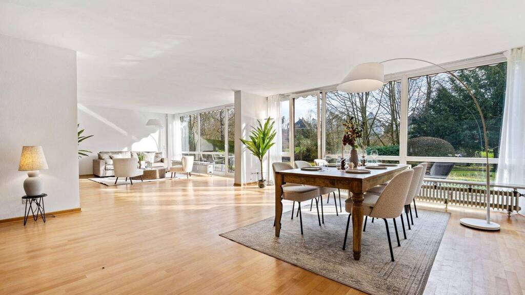 Erleben Sie außergewöhnlichen Wohnkomfort in dieser einzigartigen Erdgeschosswohnung in Hamburg-Alsterdorf. Die großzügige Wohnung mit ca. 204,71 m² Wohnfläche beeindruckt durch eine knapp 20 Meter lange Fensterfront und Südterrasse, die einen unvergleichlichen Blick auf den idyllischen Skagerrak-Kanal bietet.