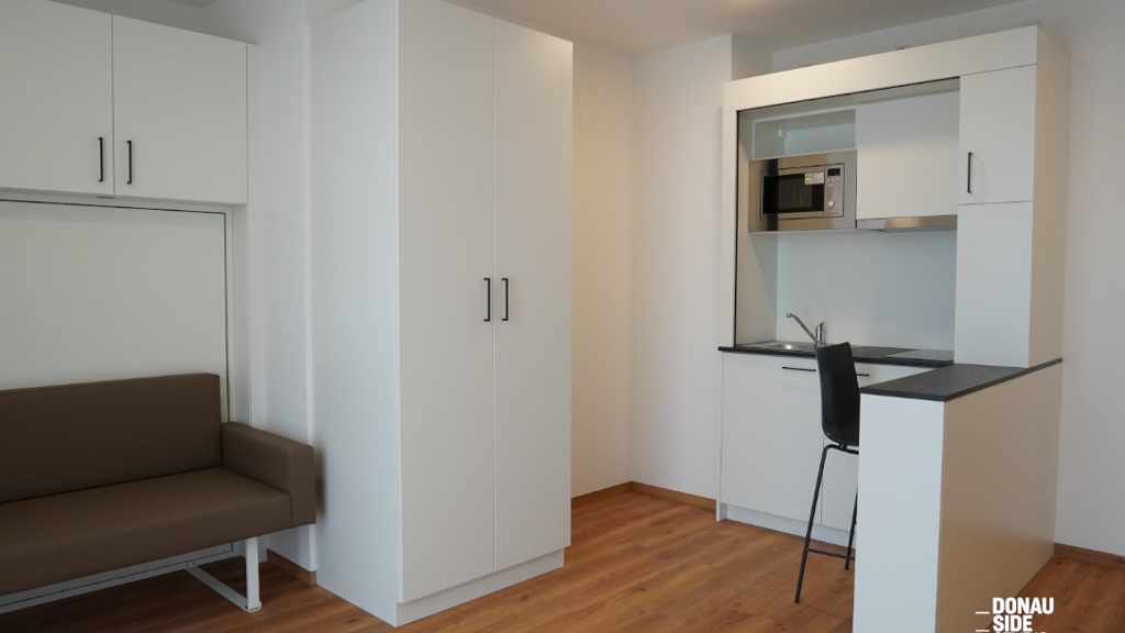 DONAU SIDE: Modernes Studio Apartment mit Terrasse, Fitnessstudio & Co-Working