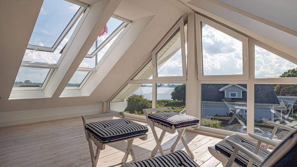 Besonders hervorzuheben sind die großzügige Holzterrasse mit ca. 40 m² sowie eine ca. 12 m² große Dachterrasse - mit malerischem Blick auf die Schlei.