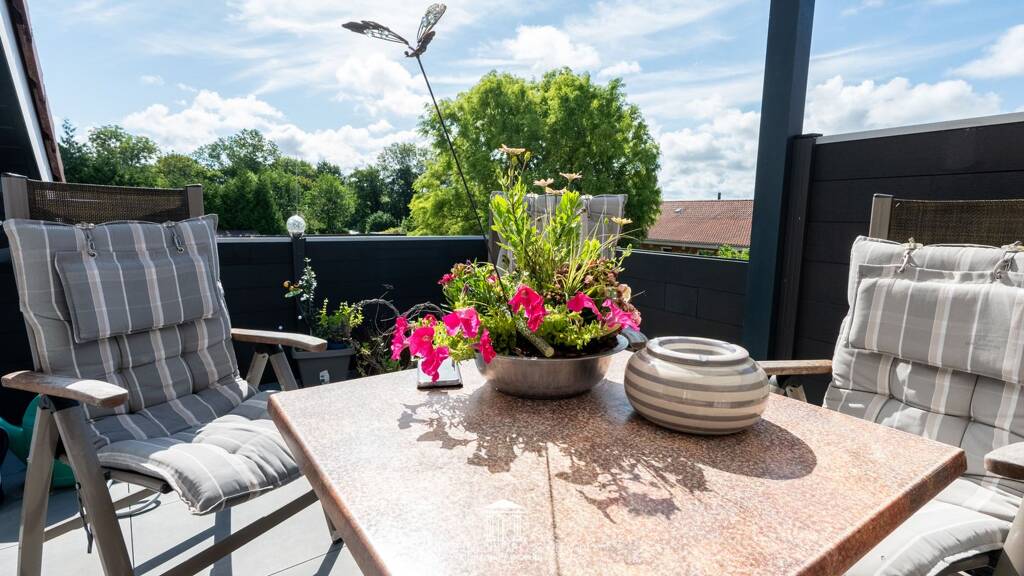 Balkon und Terrasse im Wohnbereich sorgenfür entspannte Rückzugsorte mit Blick ins Umfeld.