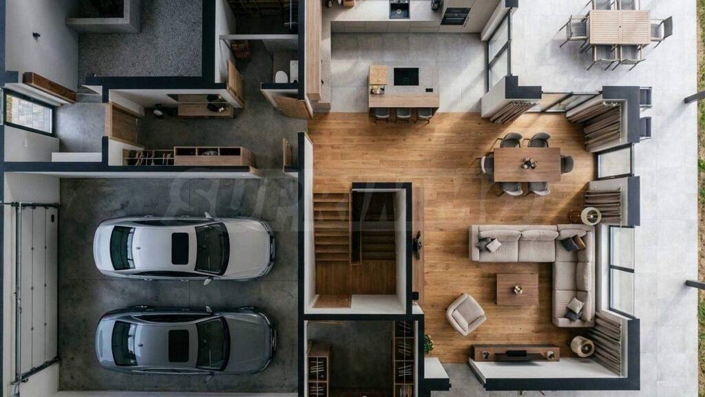 ? Garage (40,80 m²): Diese Doppelgarage bietet Platz für zwei große Pkw (SUVs) und lässt darüber hinaus Raum für Fahrräder, Skier oder Werkzeug. Die direkte Verbindung zum Eingangsbereich ist ein absolutes Komfortmerkmal.