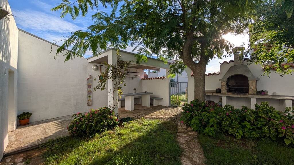 Die Immobilie verfügt über drei lichtdurchflutete Schlafzimmer mit Ost-West-Ausrichtung, ein helles Badezimmer sowie zwei separate WCs. Sie ist teilweise möbliert und bietet Raum für individuelle Gestaltungsideen. Für angenehme Temperaturen zu jeder Jahreszeit sorgen eine Elektroheizung, eine Klimaanlage und ein gemütlicher Kamin, der in den kühleren Monaten eine warme Atmosphäre schafft. Der liebevoll angelegte Hof lädt zu geselligen Familienmomenten, Grillabenden oder entspannten Stunden im Freien ein.