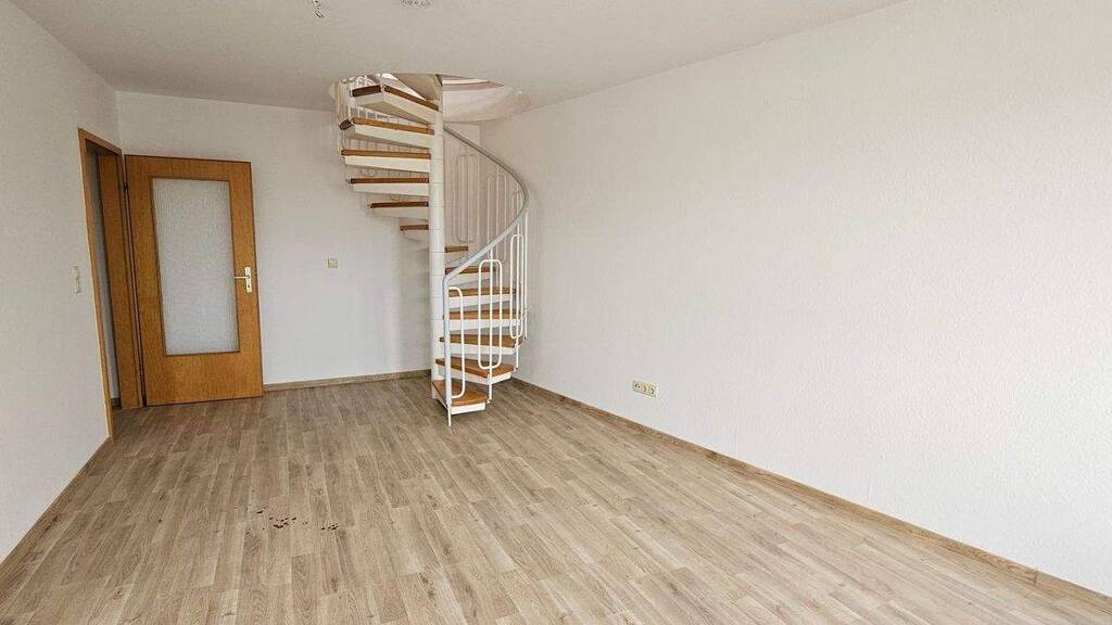 Die Wohnung bietet viel Platz auf 4 Räumen, einer Küche sowie einem Badezimmer mit Badewanne. Eine Wendeltreppe verbindet die beiden Etagen.