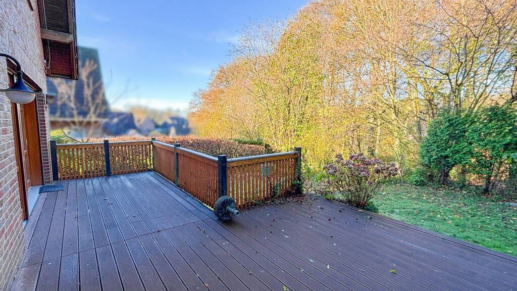 - eine große Terrasse mit WPC-Dielen und Blick ins Grüne