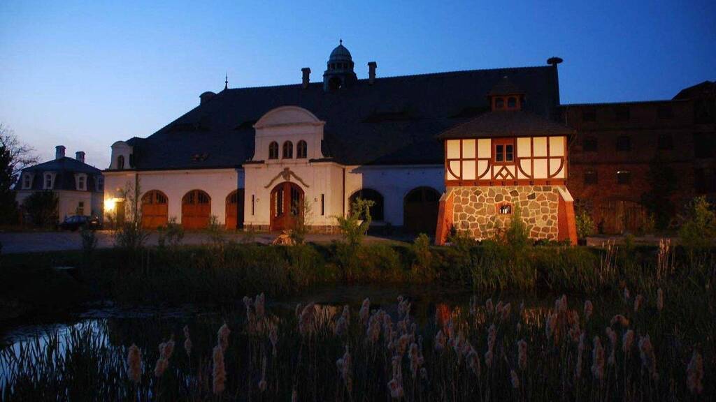 Die historische GUTSANLAGE besteht aus neogotischem Schloss & Kavaliershaus, ergänzt um einen 8 ha. großen Landschaftspark (Arboretum / dendrologischer Garten, BuGa-Außenstelle im Jahre 2004)