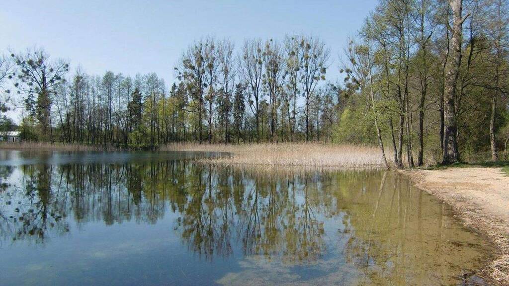 1) In der Nähe der Gutsanlage, jedoch inmitten von Feldern, mit einem kleinen Baumbestand & ,Sandstrand' direkt an einen größeren SEE (in Naturschutzgebiet) angrenzend: